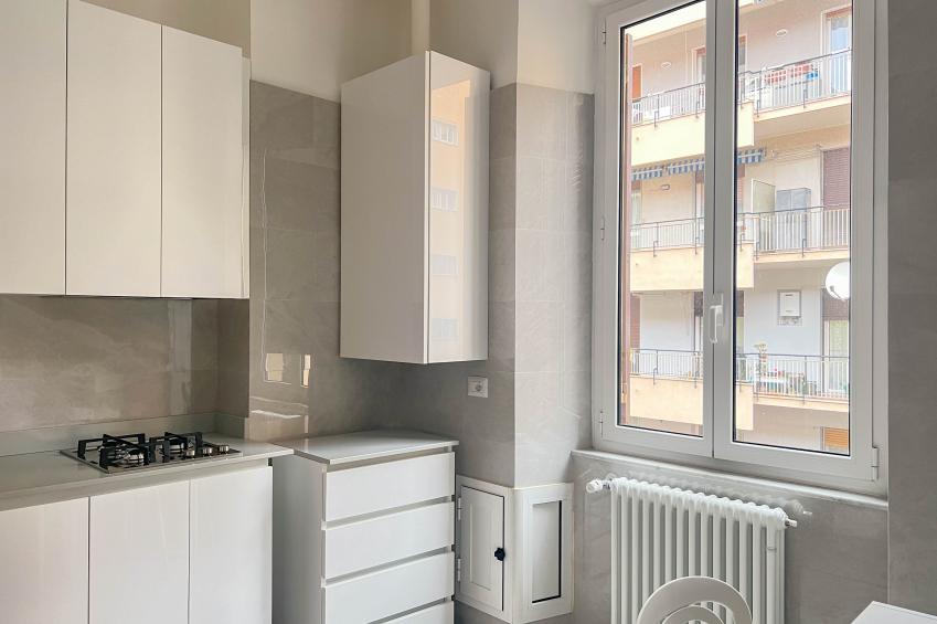 Savona, In posizione ottimale, a pochi passi dalla stazione e dal centro, proponiamo in vendita un alloggio finemente ristrutturato situato al terzo piano di un palazzo d’epoca servito da ascensore.