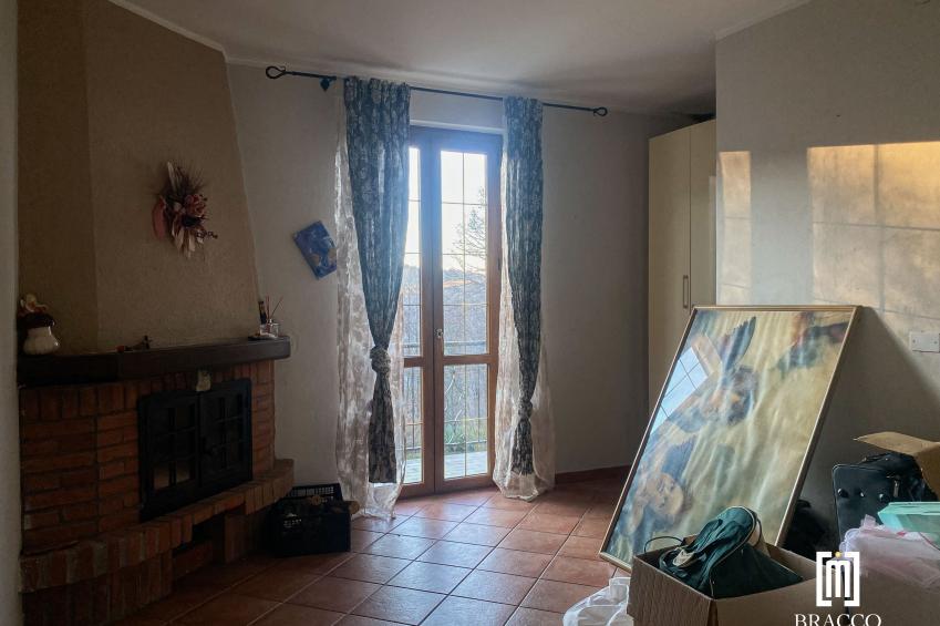 al piano primo sono collocate tre camere da letto e il secondo bagno. Una delle camere, di particolare charme, è dotata di camino e accesso diretto a una terrazza panoramica, ideale per momenti di relax e per godere della vista sul paesaggio circostante.