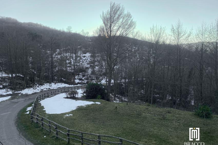 Sul retro dell’abitazione si estende inoltre un ampio giardino, direttamente collegato alla restante parte del terreno di proprietà incluso nella vendita, per una superficie complessiva di circa 19.000 mq, all’interno del quale è collocato un invaso per la raccolta di acqua sorgiva, elemento particolarmente utile per l’irrigazione e la gestione degli spazi verdi.