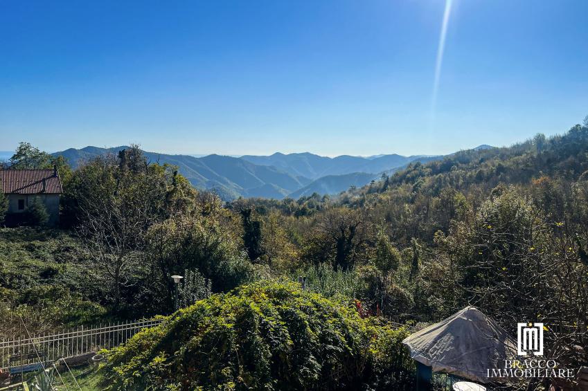 In posizione dominante e panoramica, con splendida vista aperta sulla valle e sul mare, proponiamo villetta a schiera da terra a tetto disposta su tre livelli. La proprietà è impreziosita da un’ampia terrazza panoramica e da oltre 7.700 mq di terreno circostante tra prato e bosco, ideali per chi desidera vivere immerso nella natura e nella tranquillità.